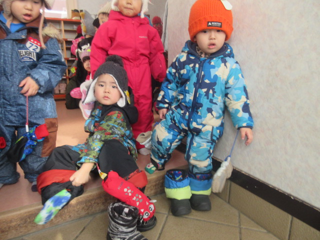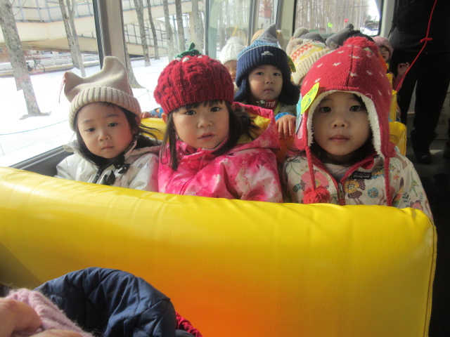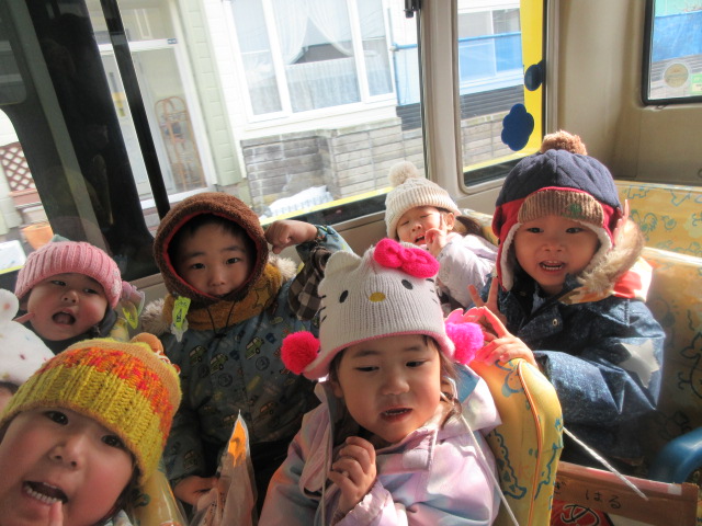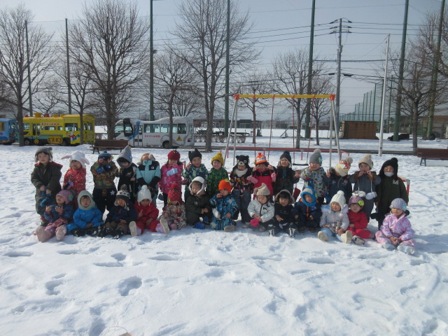 連日の雪に大人たちはため息をついていますが、子どもたちは大喜び。 「あのね、スケートまつりで滑り台滑ったよ」 「雪まつりに行ったよ」とキラキラした目で教えてくれた子どもたち。 北海道の厳しい寒さも、楽しいお祭りの思い出があれば、子どもたちにとっては最高の遊び場ですね。 そして今日は年少さんとたまごさんが楽しみにしていた園外保育の日。 「バ…