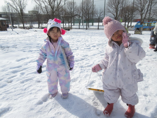 “手作りそり”を持って年中さんがすこやか公園へお出掛けしました。