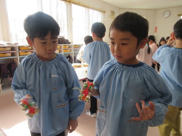 「ここをこうやるんだよ!」と優しく教えてもらいながら、できあがるたびに「できたー!」の嬉しい声があちこちで聞こえてきました♪
