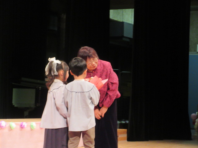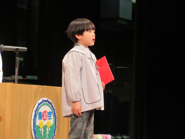 年長さんの門出をみんなで心を込めてお祝いしたいと思います。